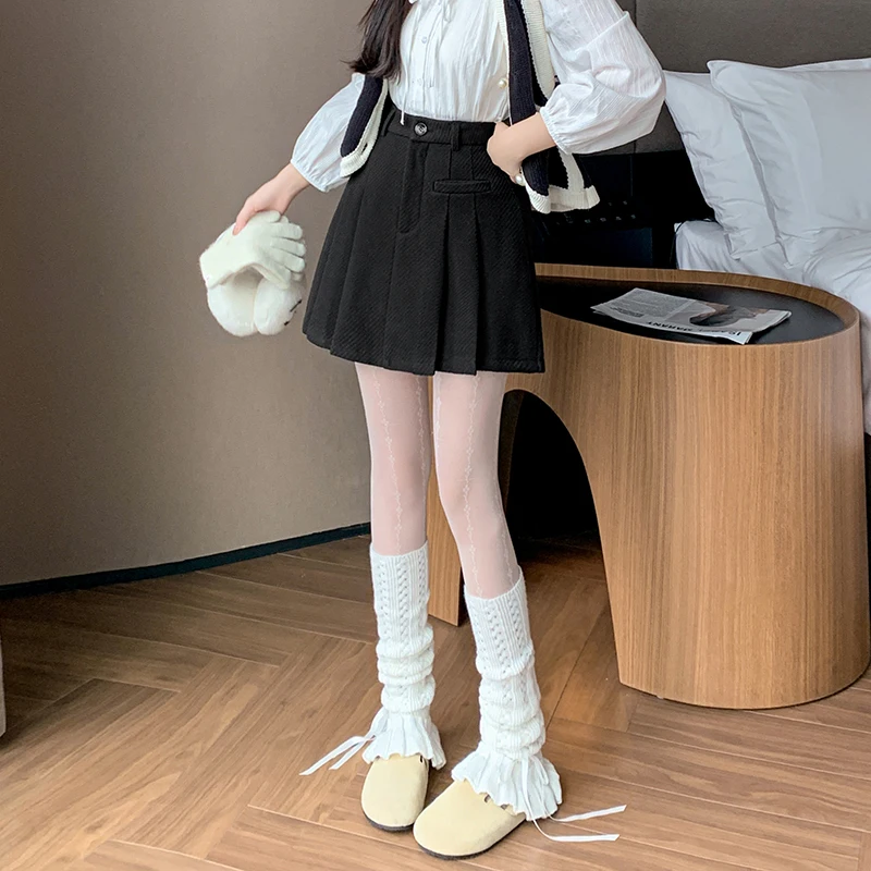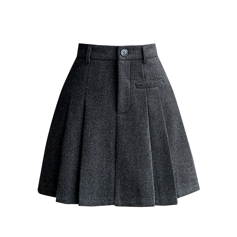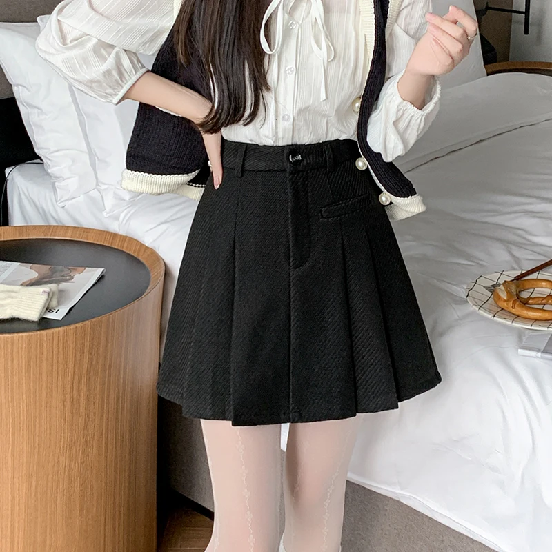 Fashion High Waist Woolen Short A-shaped Pleated Skirt Women